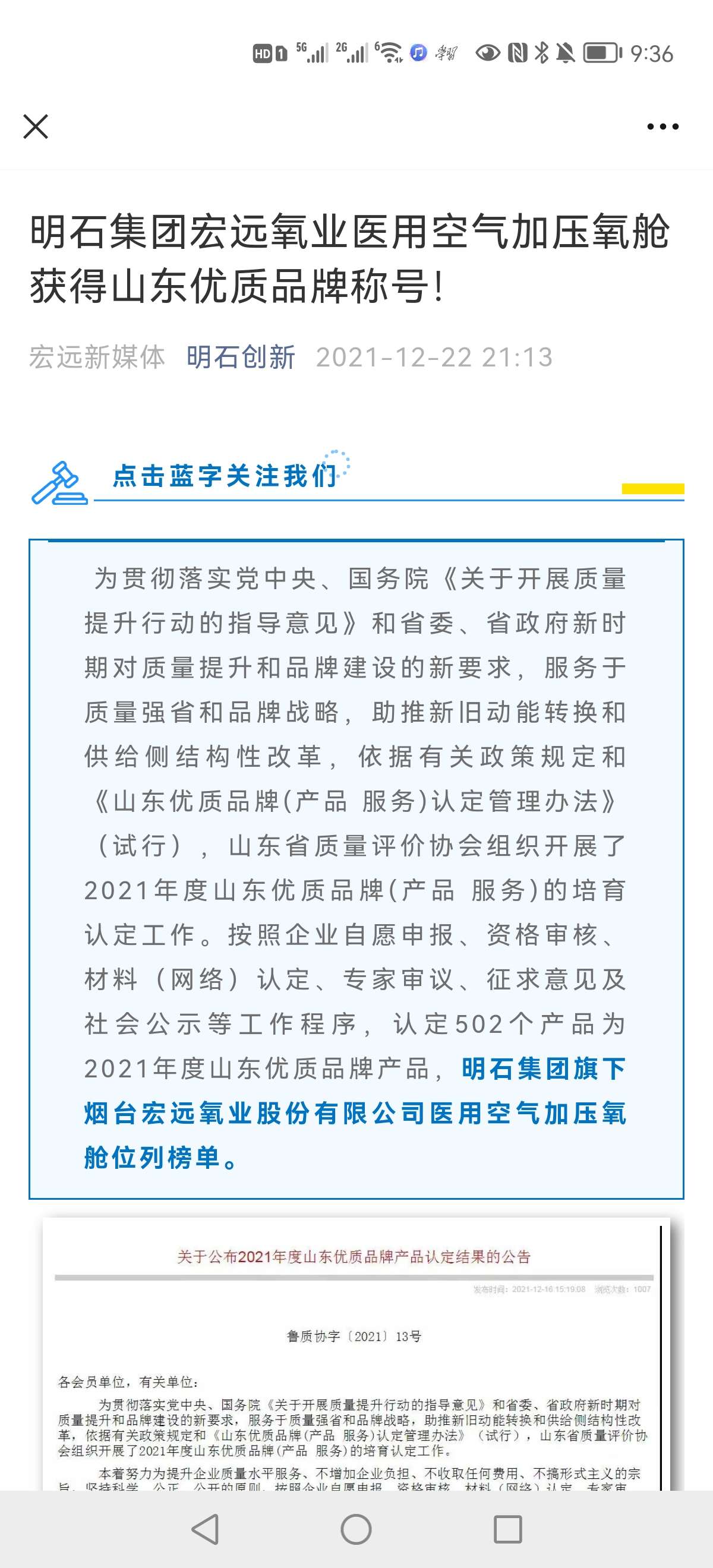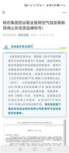 明石创新子公司烟台宏远氧业股份有限公司是从事医用高压氧舱、军用潜水训练舱、盾构机