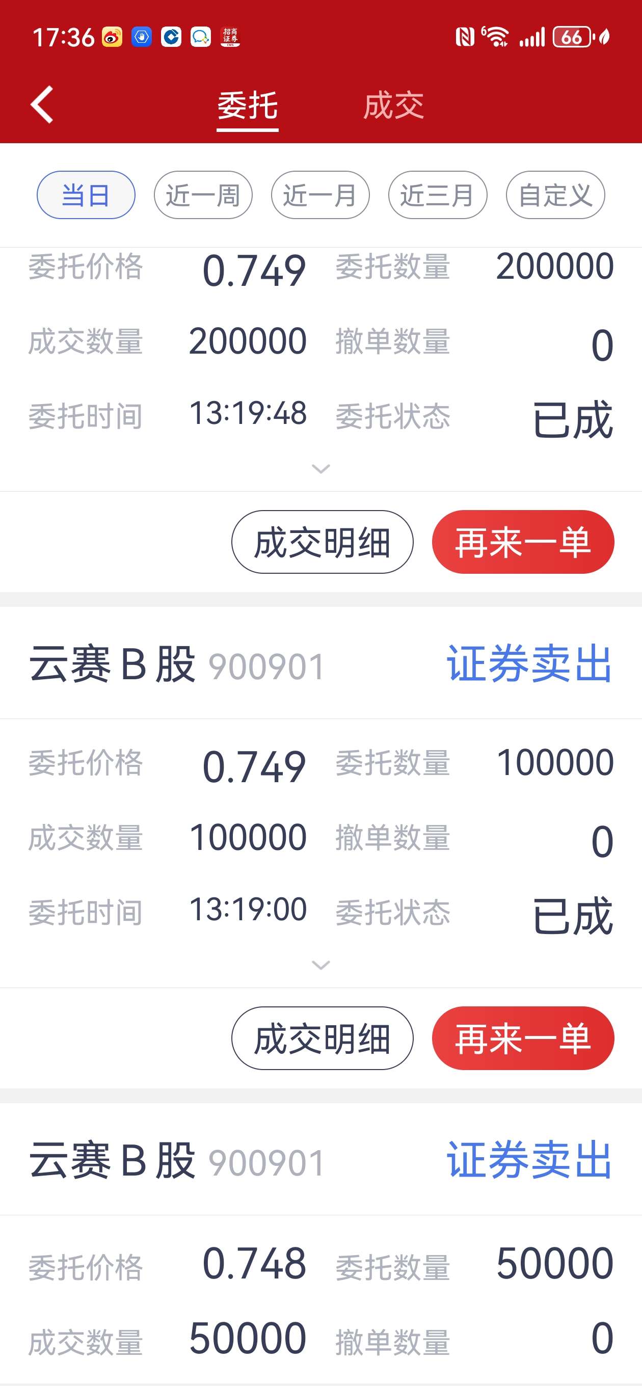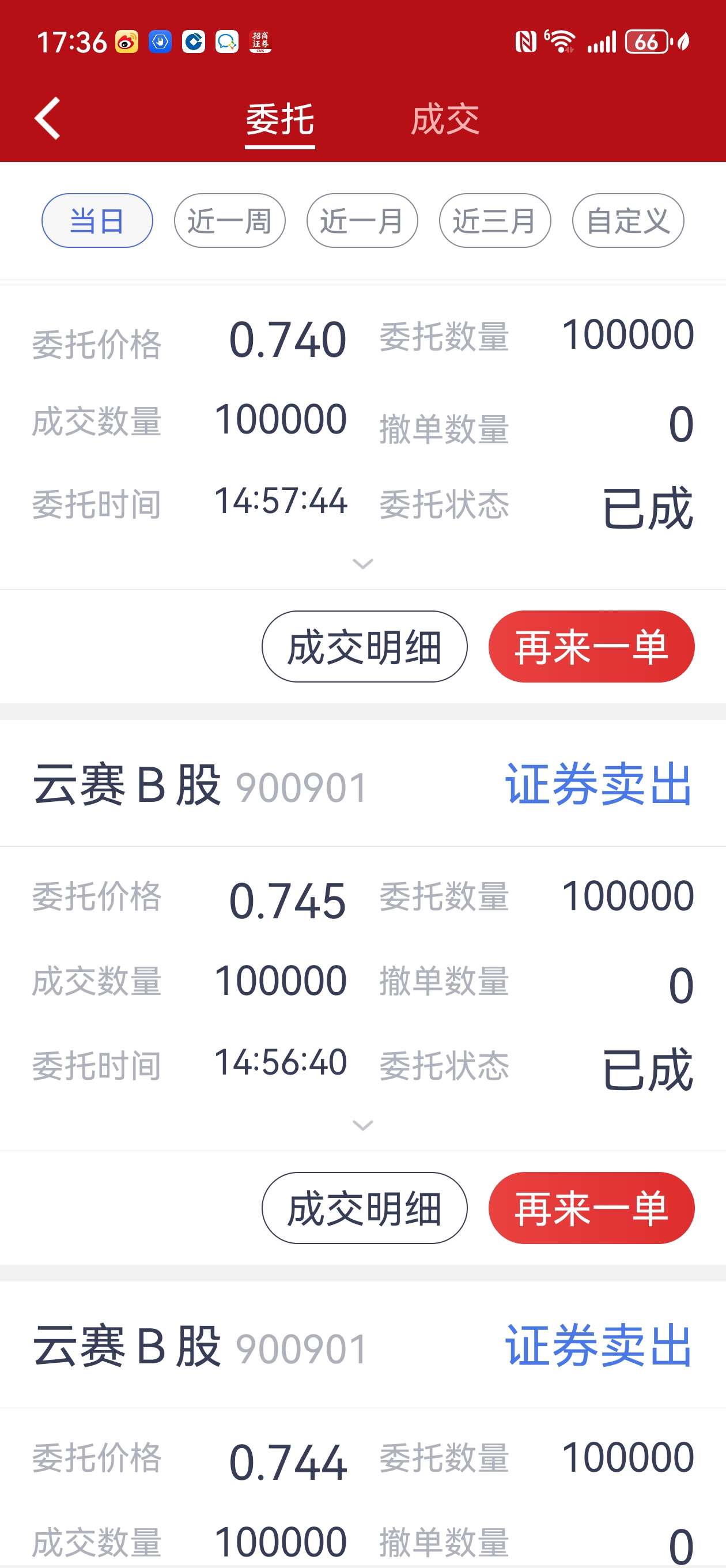 $云赛B股(SH900901)$ 我声明一下:这几天0.70以上我出了370多万股,其中今天出了1百多万股,0.740--0.754五万十万二十万单子好多是俺的。二百多万股前二天出早了,后悔,没想到买盘这么狠!