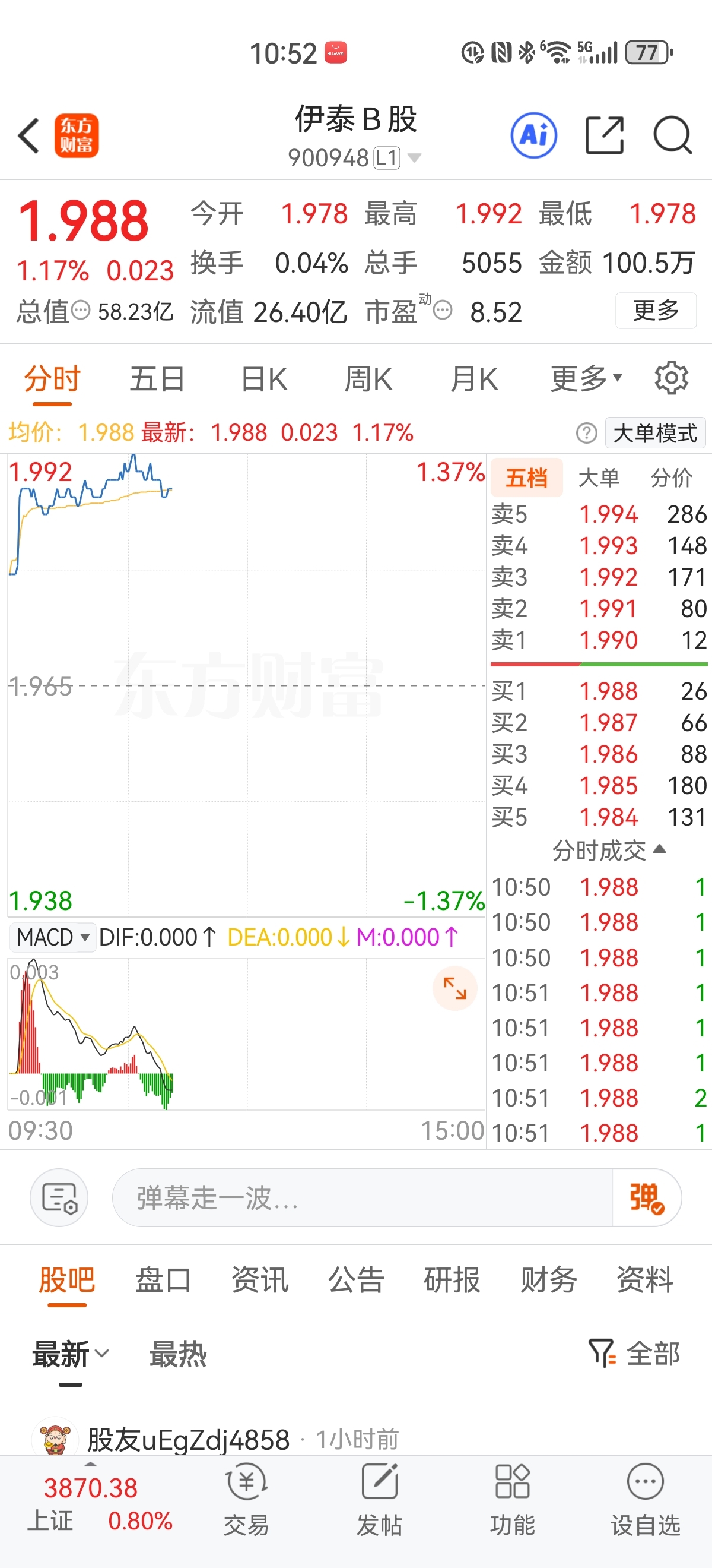 $伊泰B股(SH900948)$ 1手,1手,1手