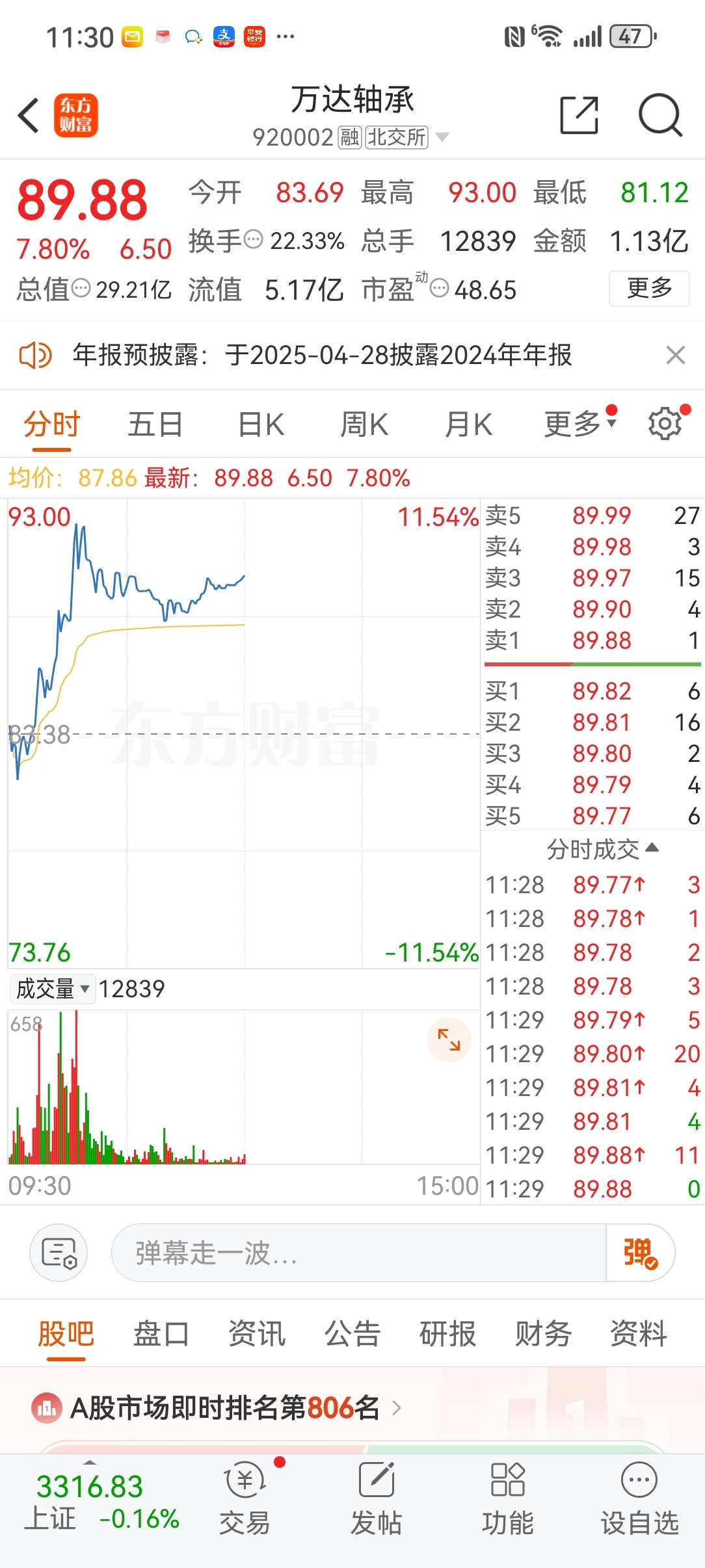$万达轴承(SZ920002)$