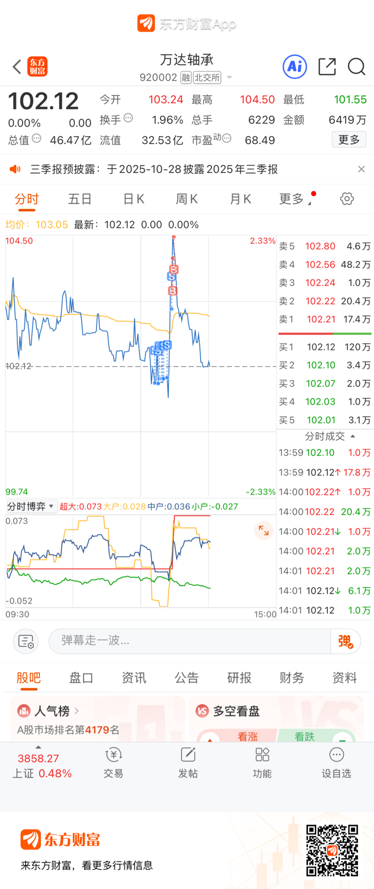 $万达轴承(SZ920002)$ 以为要起来了,成本又高了一块多