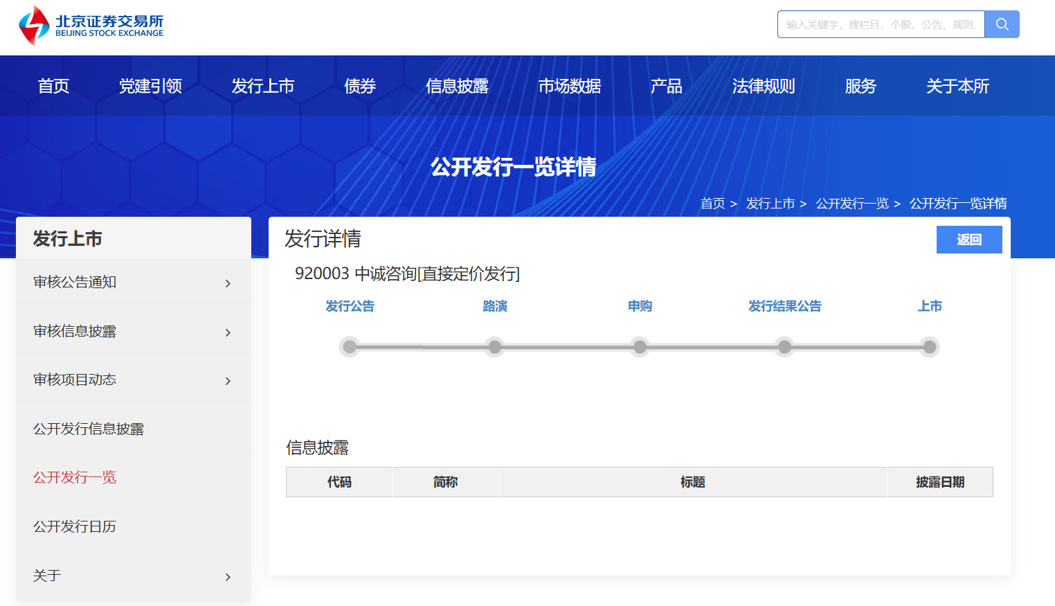 中诚咨询申购代码920003,有路演信息了,16:00左右北交所也会有信息,大概