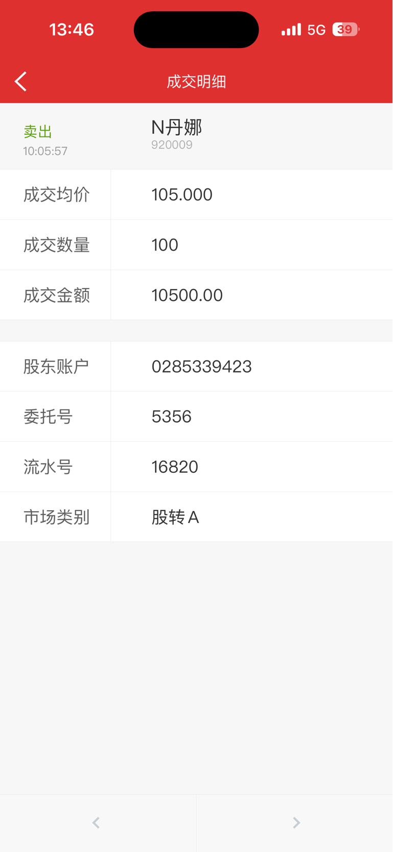 $N丹娜(SZ920009)$ 105卖出 知足常乐