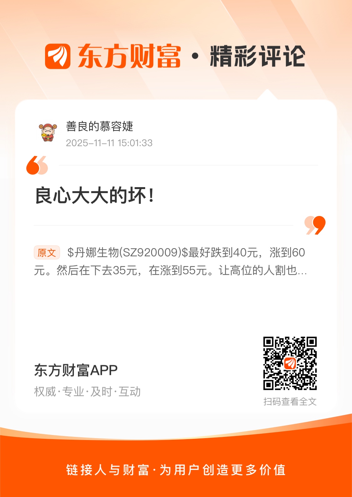 $丹娜生物(SZ920009)$ 最好跌到40元,涨到60元。然后在下去35元,在涨到55元。让高位的人割也亏,放也亏。里外不是人