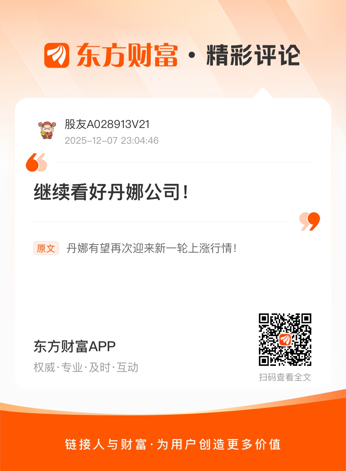 //@股友A028913V21 : 继续看好丹娜公司!