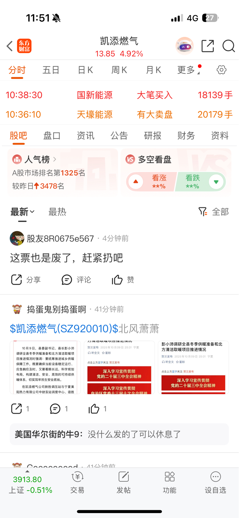 $凯添燃气(SZ920010)$ 热度比股价上的更加快