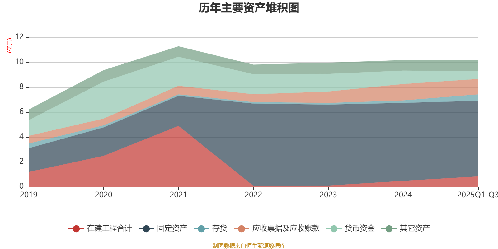 资产重大变化方面,截至2025年三季度末,公司货币资金较上年末减少42.12%,占公司总资产比重下降4.48个百分点;在建工程合计较上年末增加74.94%,占公司总资产比重上升3.5个百分点;存货较上年末增加160.86%,占公司总资产比重上升3.14个百分点;固定资产较上年末减少2.97%,占公司总资产比重下降1.86个百分点。