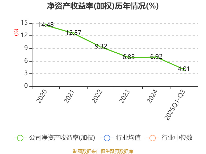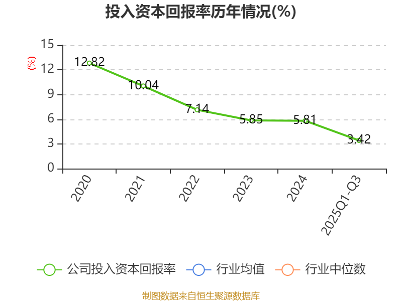 盈利能力方面, 2025年前三季度公司加权平均净资产收益率为4.01%,同比下降1.83个百分点。公司2025年前三季度投入资本回报率为3.42%,较上年同期下降1.58个百分点。