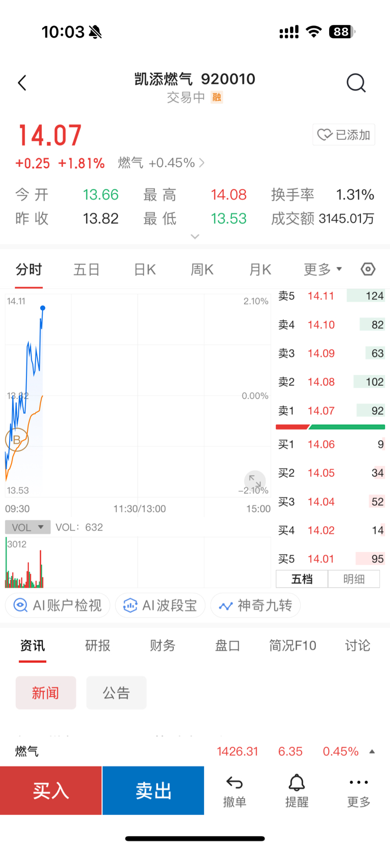 $凯添燃气(SZ920010)$ 哈哈,我点火了,你还能跌下来13.56吗?弟弟