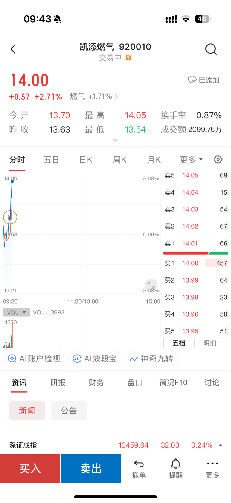 $凯添燃气(SZ920010)$ 哈哈!13.63!有本事砸下来苟主力
