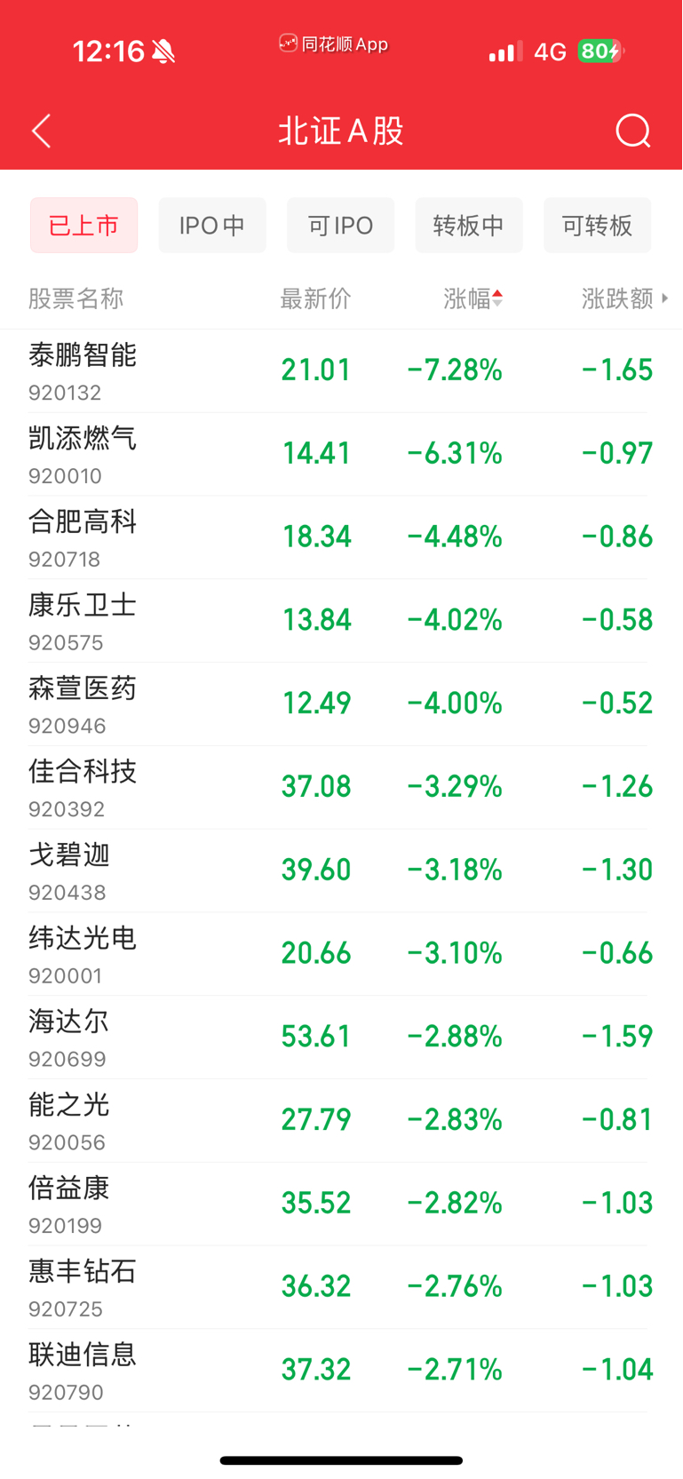 $凯添燃气(SZ920010)$ 上一个交易日是北交所涨幅第四位,今天是跌幅第二。
