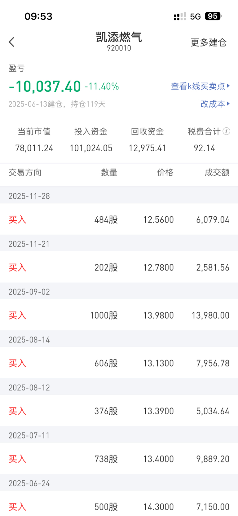 $凯添燃气(SZ920010)$ 14.04的本,伟大的股友们告诉我,今年回本还有戏么?