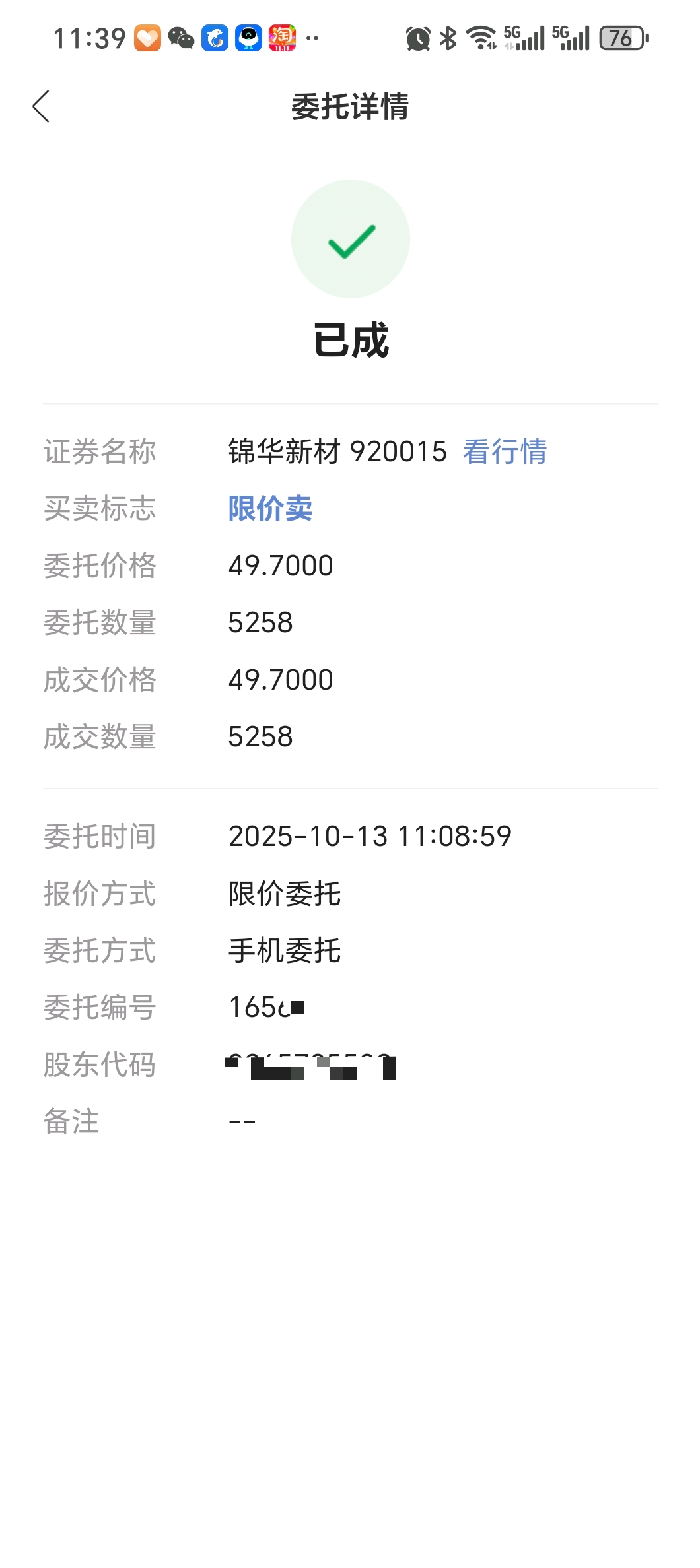 $锦华新材(SZ920015)$ 我卖了,早盘低开没动,5.77点利润出局,你可以拉了!祝兄弟们吃30