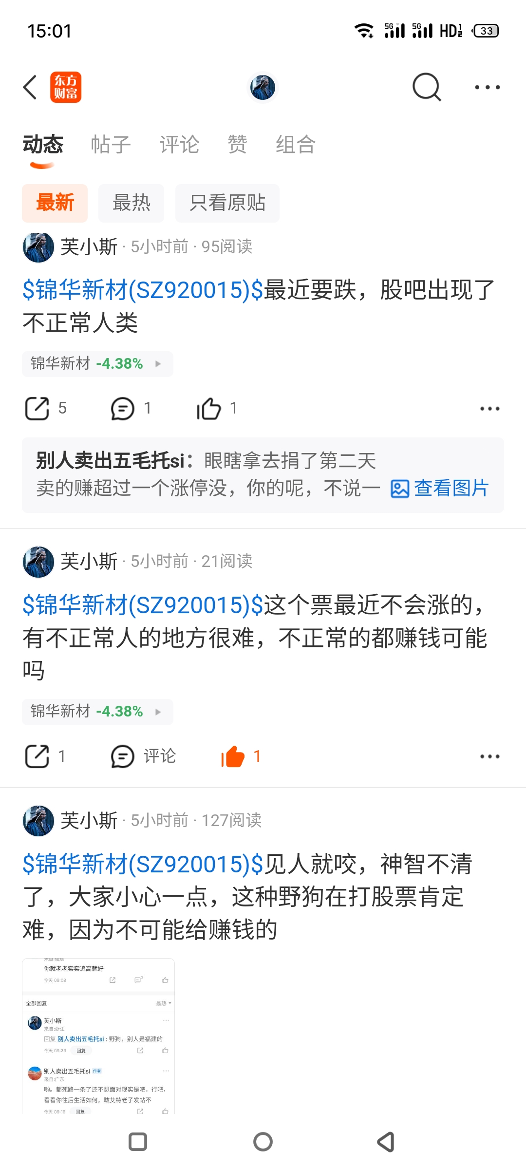 $锦华新材(SZ920015)$ 我没说错吧,又正常的人哇哇乱叫的票别想有行情,等他gepi了再买不迟