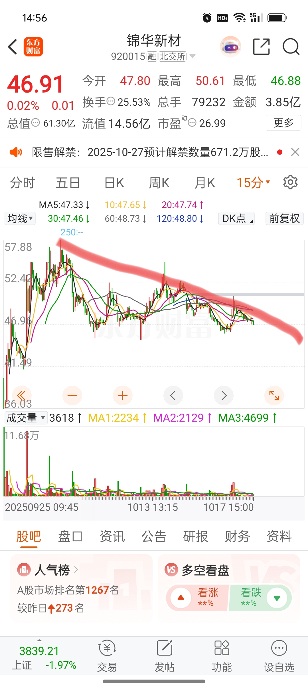 $锦华新材(SZ920015)$ 什么时候突破下降趋势线,什么时候进场