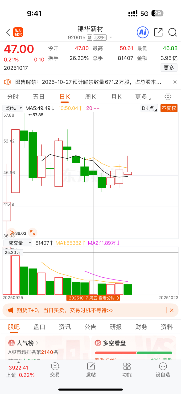 $锦华新材(SZ920015)$ 跟10月17号一模一样 明天大跌 拭目以待