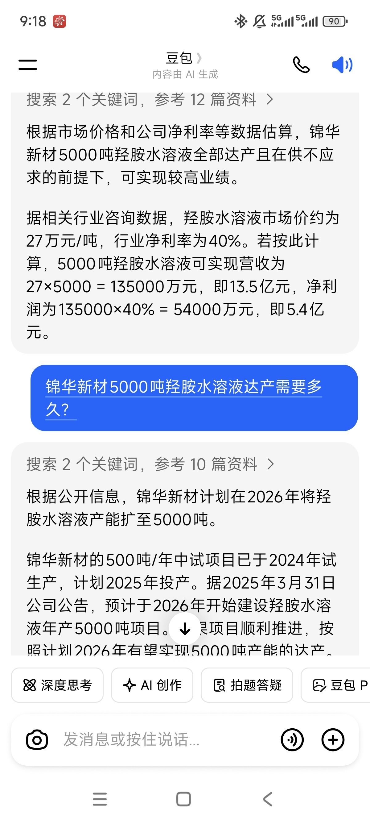 2026年建设5000吨羟胺水溶液项目,预计营收13.5亿,净利润5.4亿,妥妥