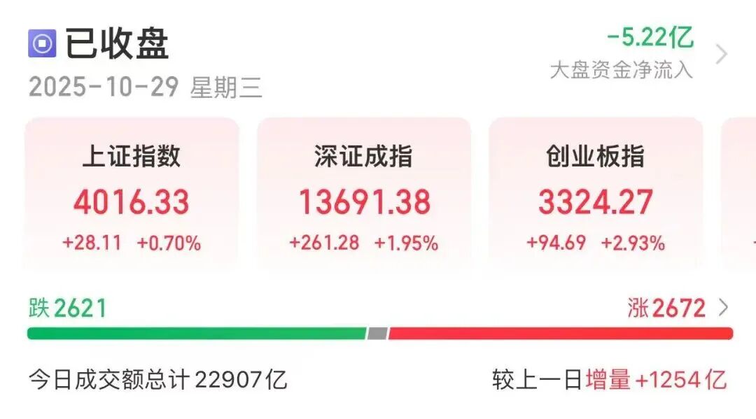 10月29日,A股表现抢眼,沪指站上4000点,创业板指涨近3%,北证50涨逾8%。