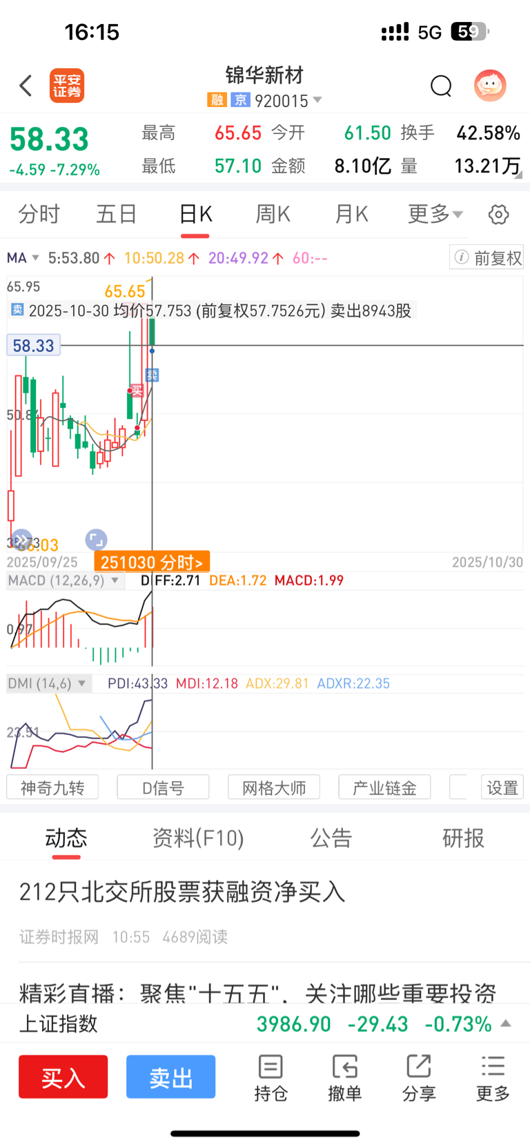 $锦华新材(SZ920015)$ 昨天格局了 今天早盘2个多点想出半仓的 尾盘走了 祝大家发财 下跌我会在回来的