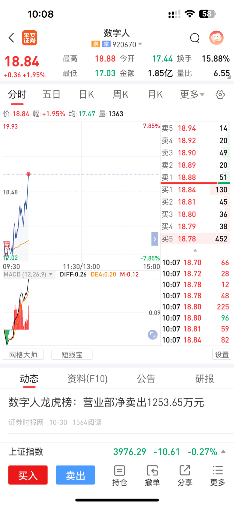 虽然没买进去撤单了这个一直看好他我-7抄底了数字人也还算不错我还会回来的目标价1