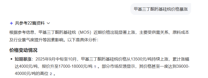 甲基三丁酮肟基硅烷价格继续飙升,已经翻倍