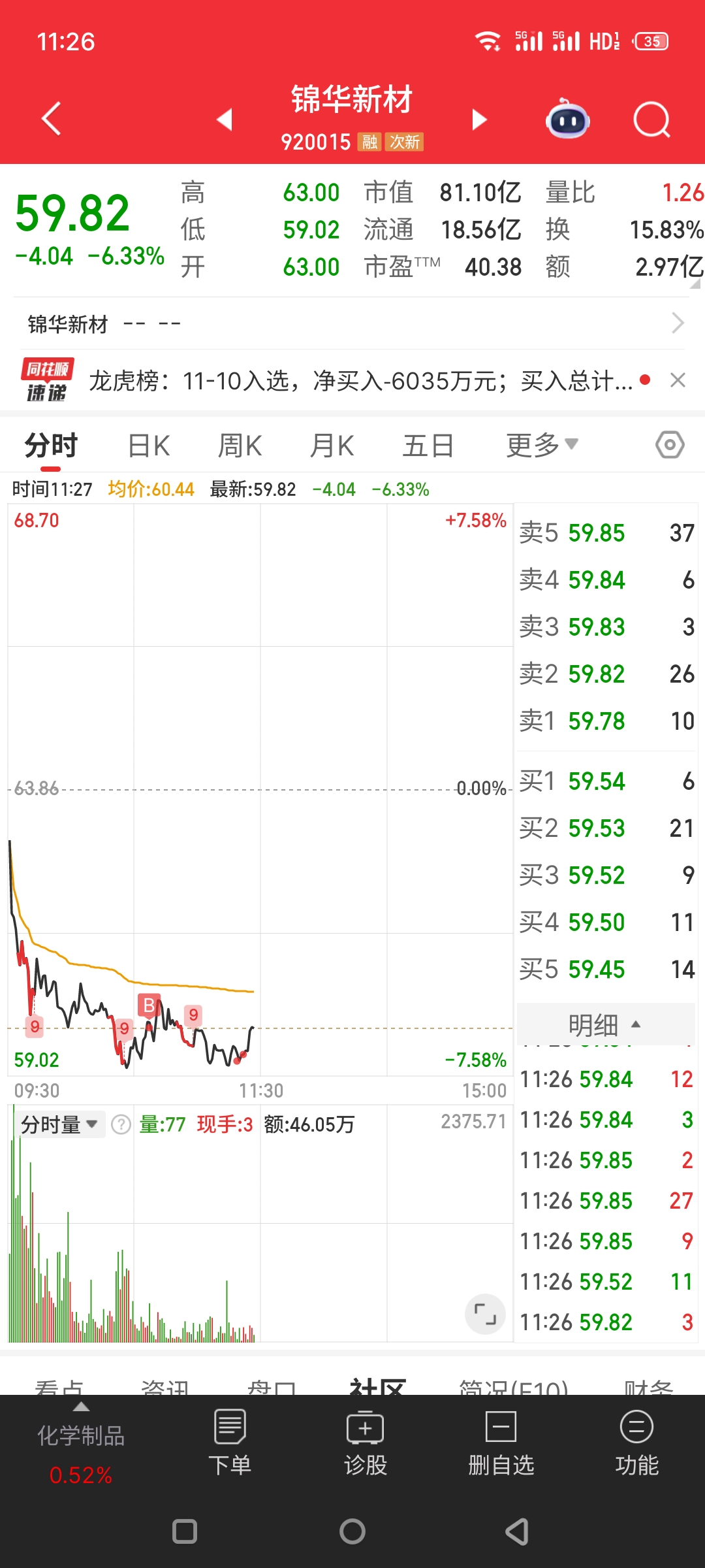 $锦华新材(SZ920015)$ 又加了20万,坐等下午拉回,要求不高,有3个点的t今天就行了