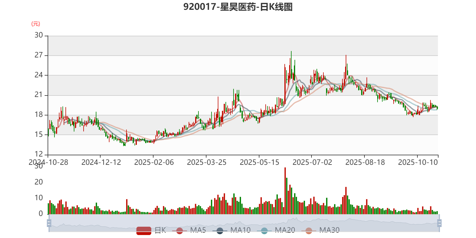 以10月28日收盘价计算,星昊医药目前市盈率(TTM)约为26.25倍,市净率(LF)约1.45倍,市销率(TTM)约3.62倍。