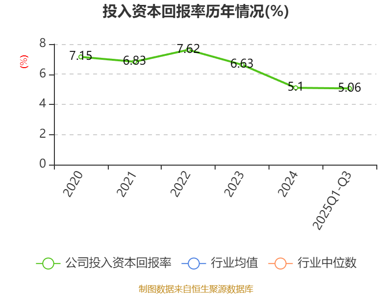 盈利能力方面, 2025年前三季度公司加权平均净资产收益率为5.47%,同比上升0.25个百分点。公司2025年前三季度投入资本回报率为5.06%,较上年同期上升0.15个百分点。