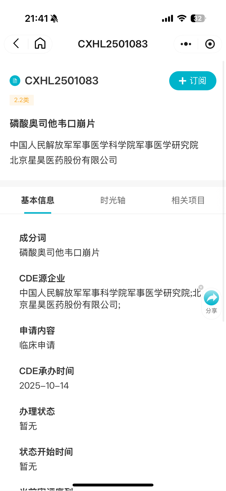 $星昊医药(SZ920017)$ 本次奥司他韦申请是临床申请,并非新药申请。