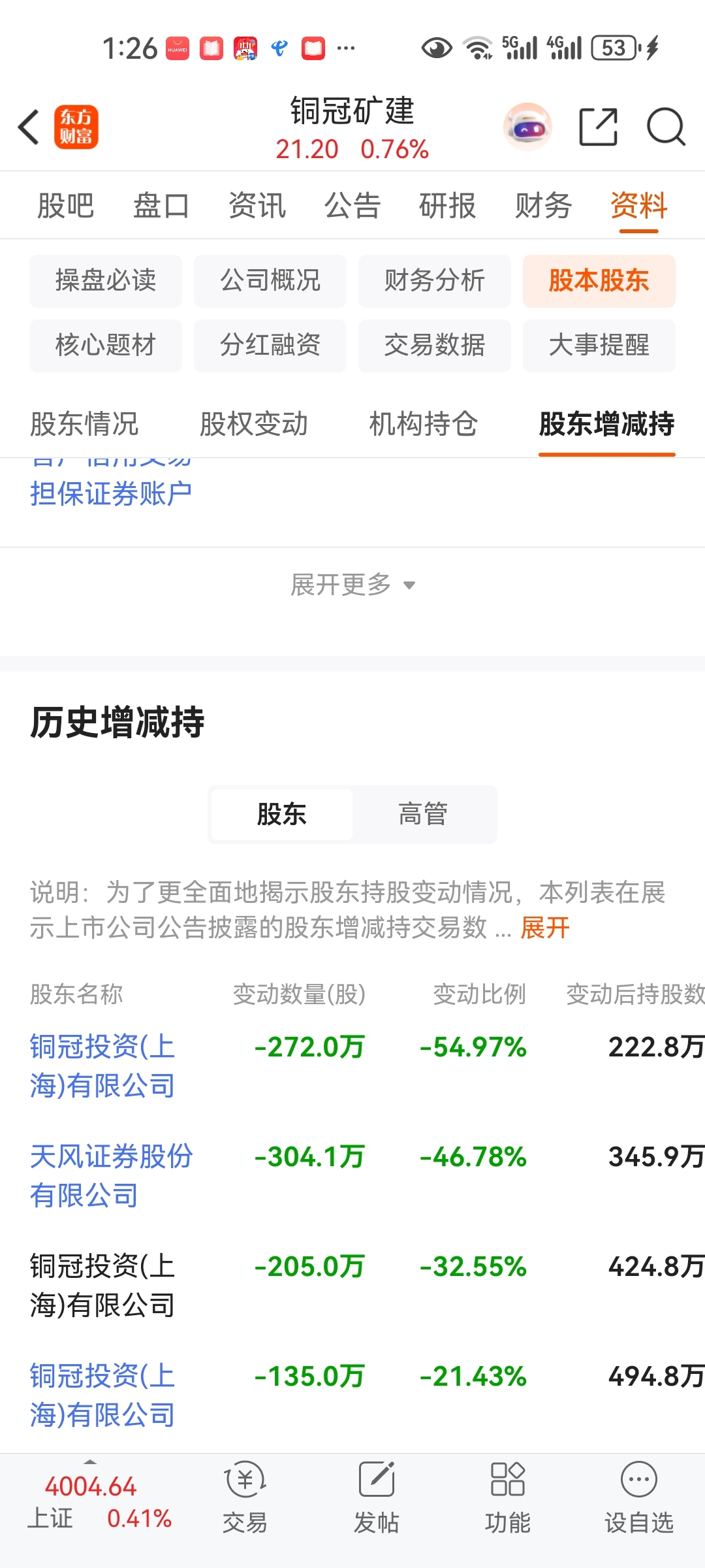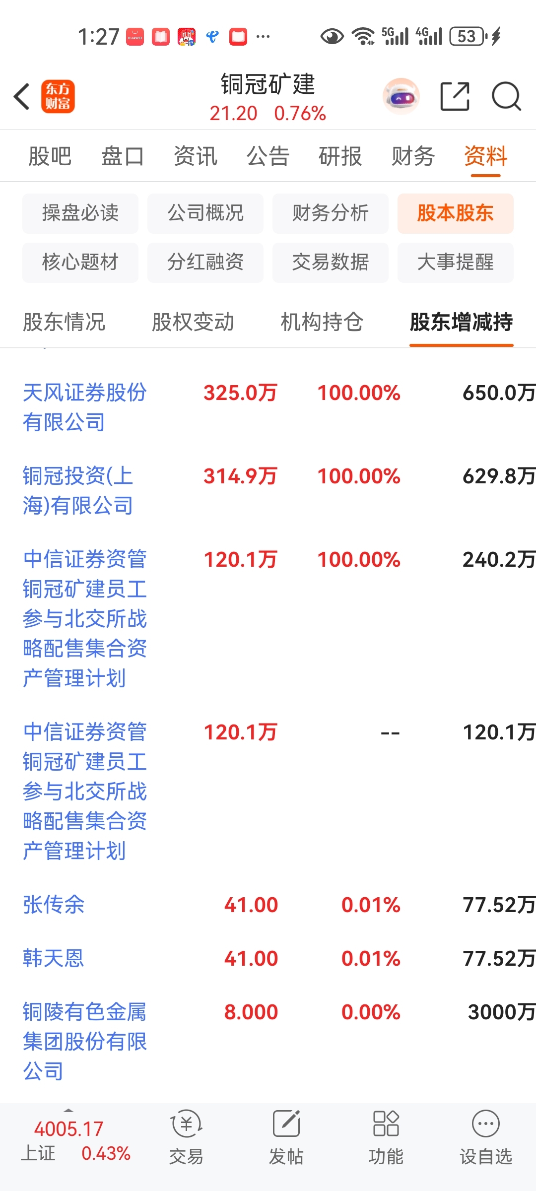 天风和铜冠投资卖完上次解禁的,这次又解禁可以卖了