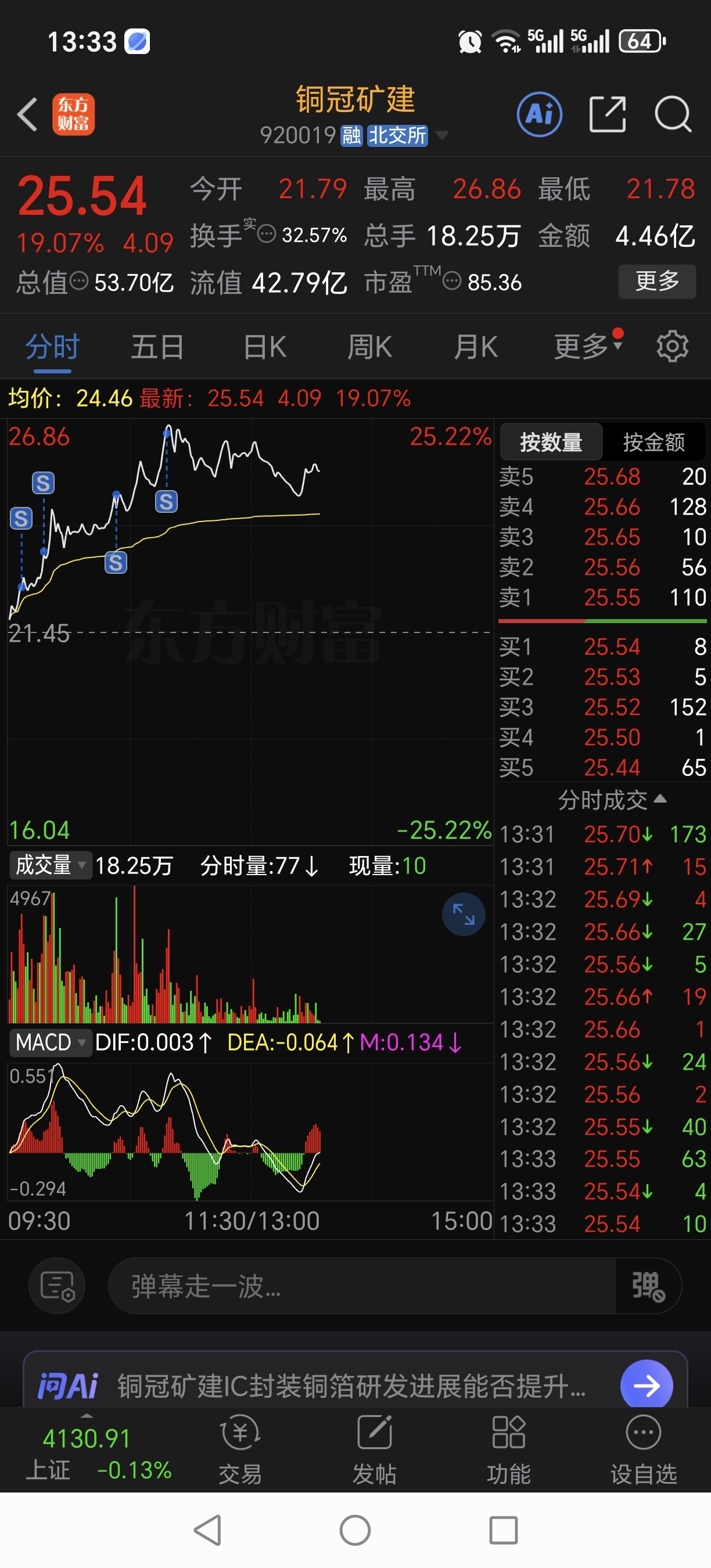 $铜冠矿建(SZ920019)$ 等下午能接回不