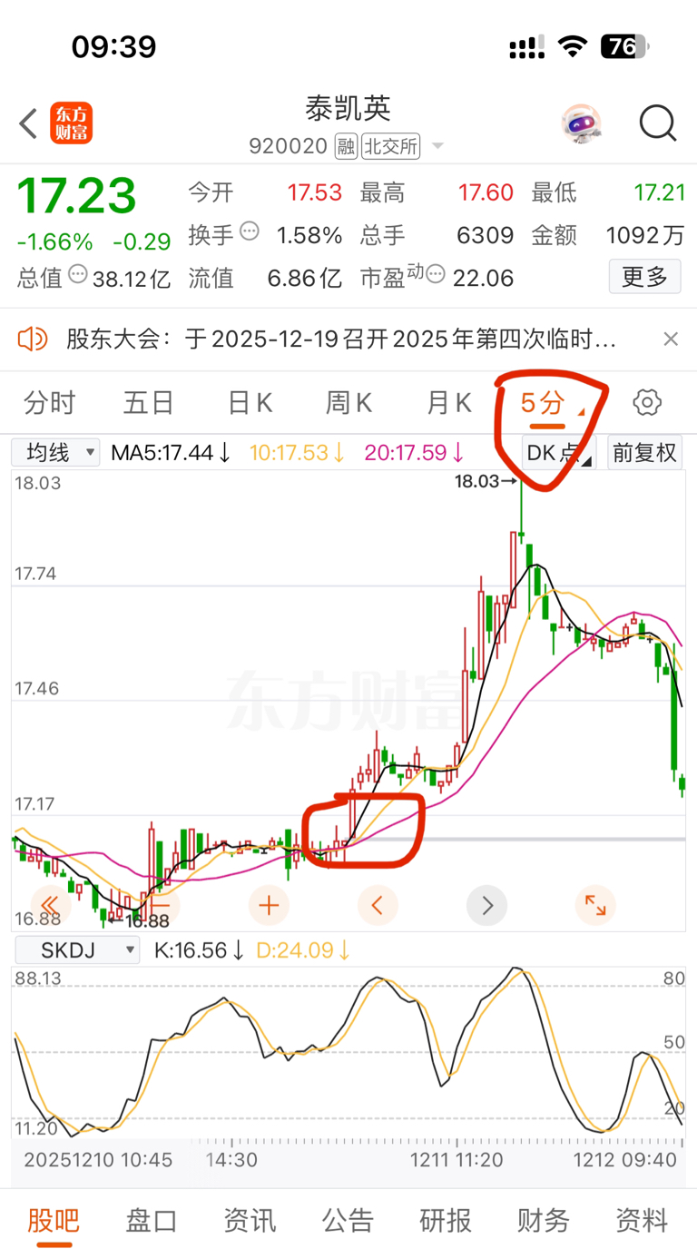 $泰凯英(SZ920020)$ 17.17-17.27买入,不补缺口。最好全仓。