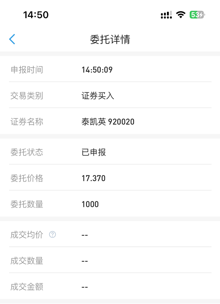 $泰凯英(SZ920020)$ 晕。谁看10手成交单还以为是我的。原来程序比我更快