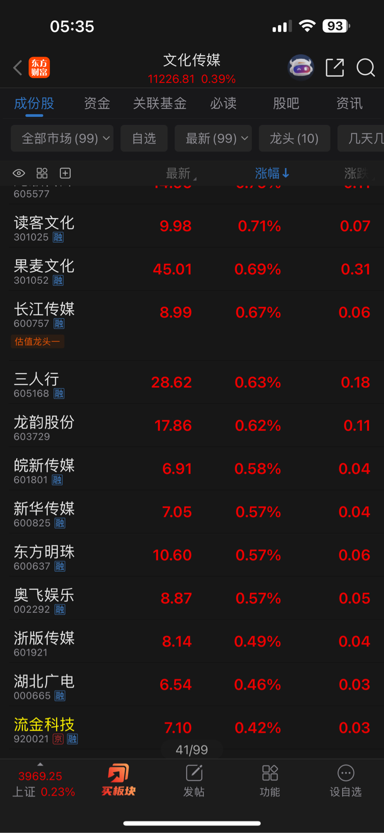 $流金科技(SZ920021)$ 涨幅排名靠后,算是低价股。互动媒体与服务$文化传媒(BK0486)$