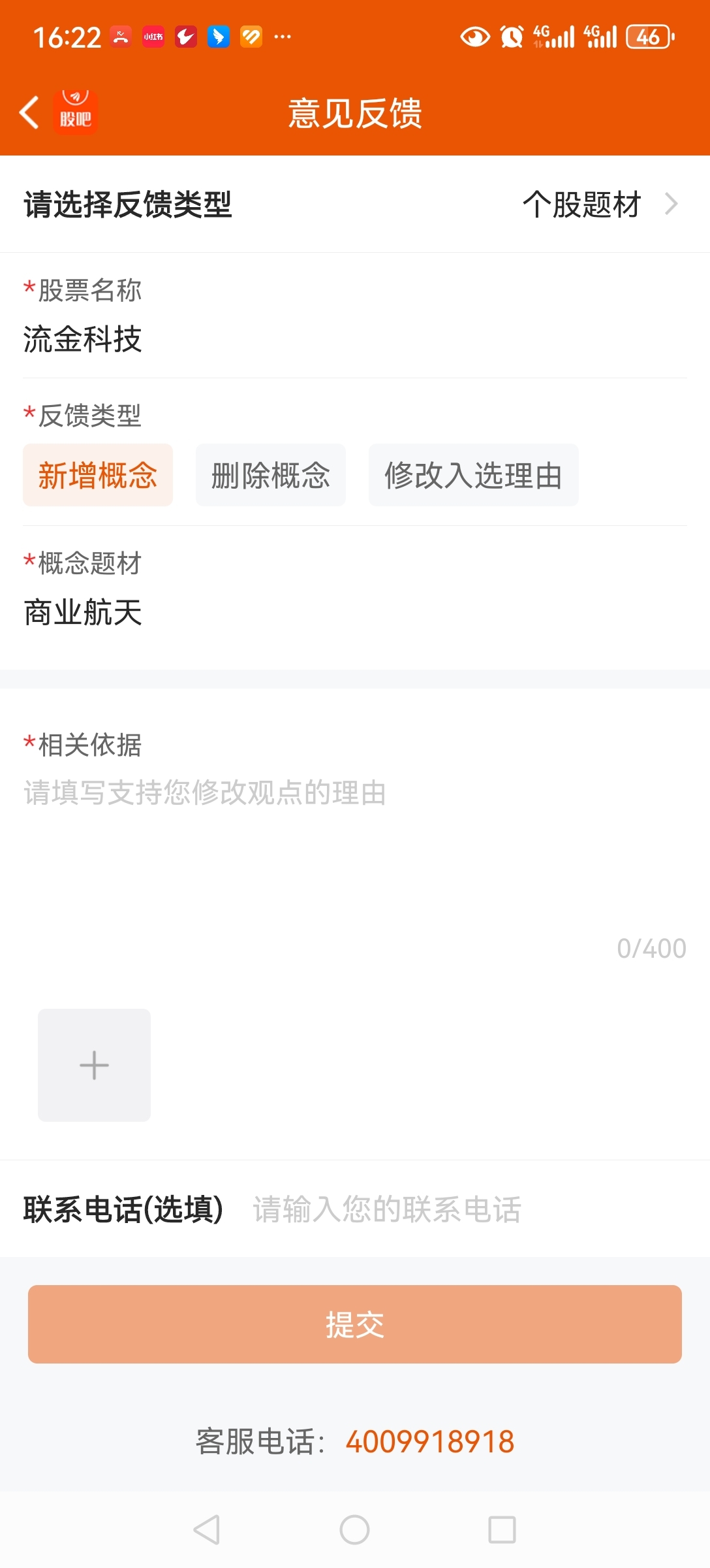 $流金科技(SZ920021)$ 大家一起动起来,在概念题材维护里添加商业航天概念