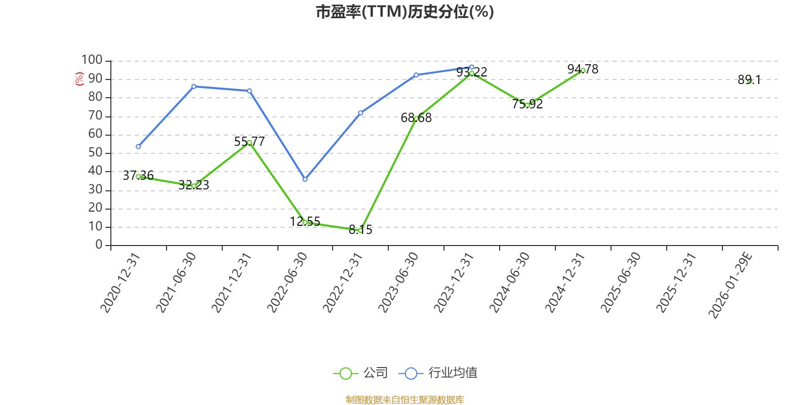 以本次披露业绩预告均值计算,公司近年市盈率(TTM)图如下所示: