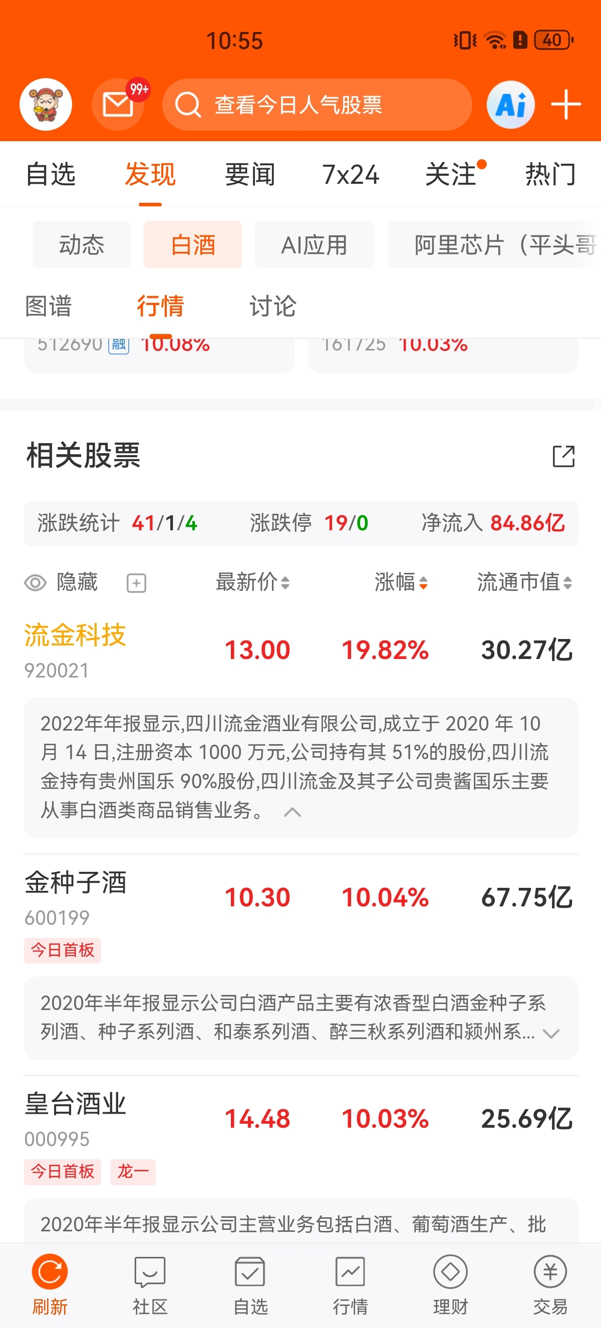 流金科技有白酒概念