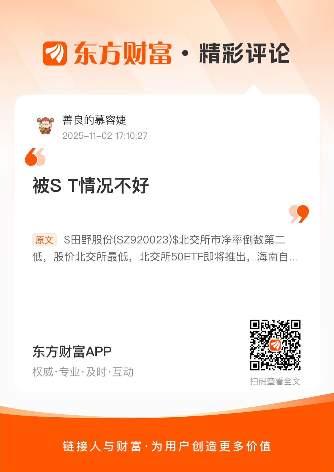 $田野股份(SZ920023)$ 北交所市净率倒数第二低,股价北交所最低,北交所50ETF即将推出,海南自贸区即将封关,主营和利润将更上一层楼,因年报出具否定意见即将整改完毕,未来两年业绩将高速增长的海南封关!北交所最低价格股,即将迎来暴涨!$海马汽车(SZ000572)$ $平潭发展(SZ000592)$