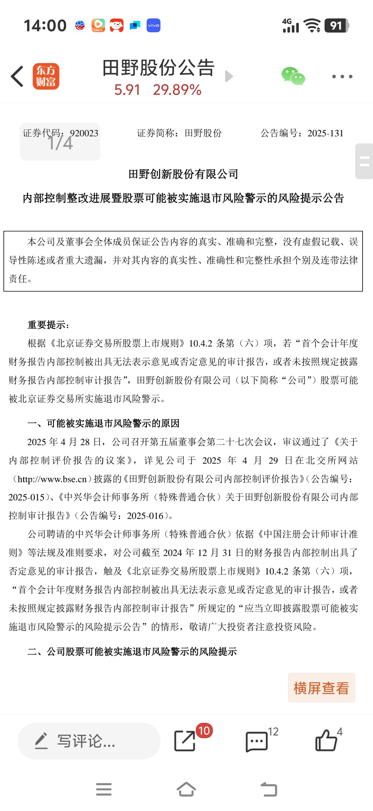 $田野股份(SZ920023)$ 你们不看公告吗