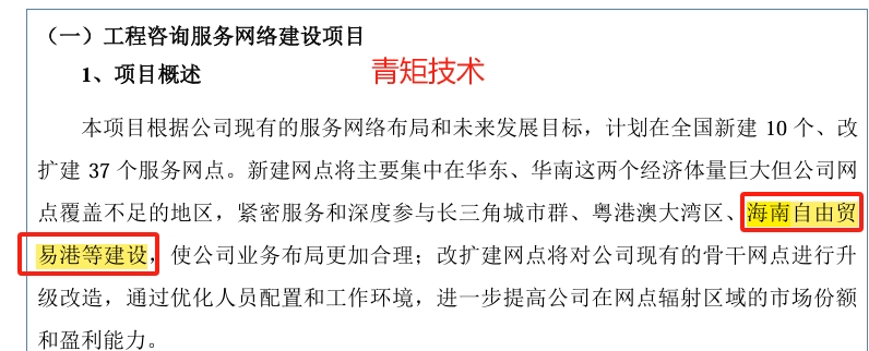 $青矩技术(SZ920208)$  青矩技术:募投项目涉及海南自由贸易港建设!(下图)