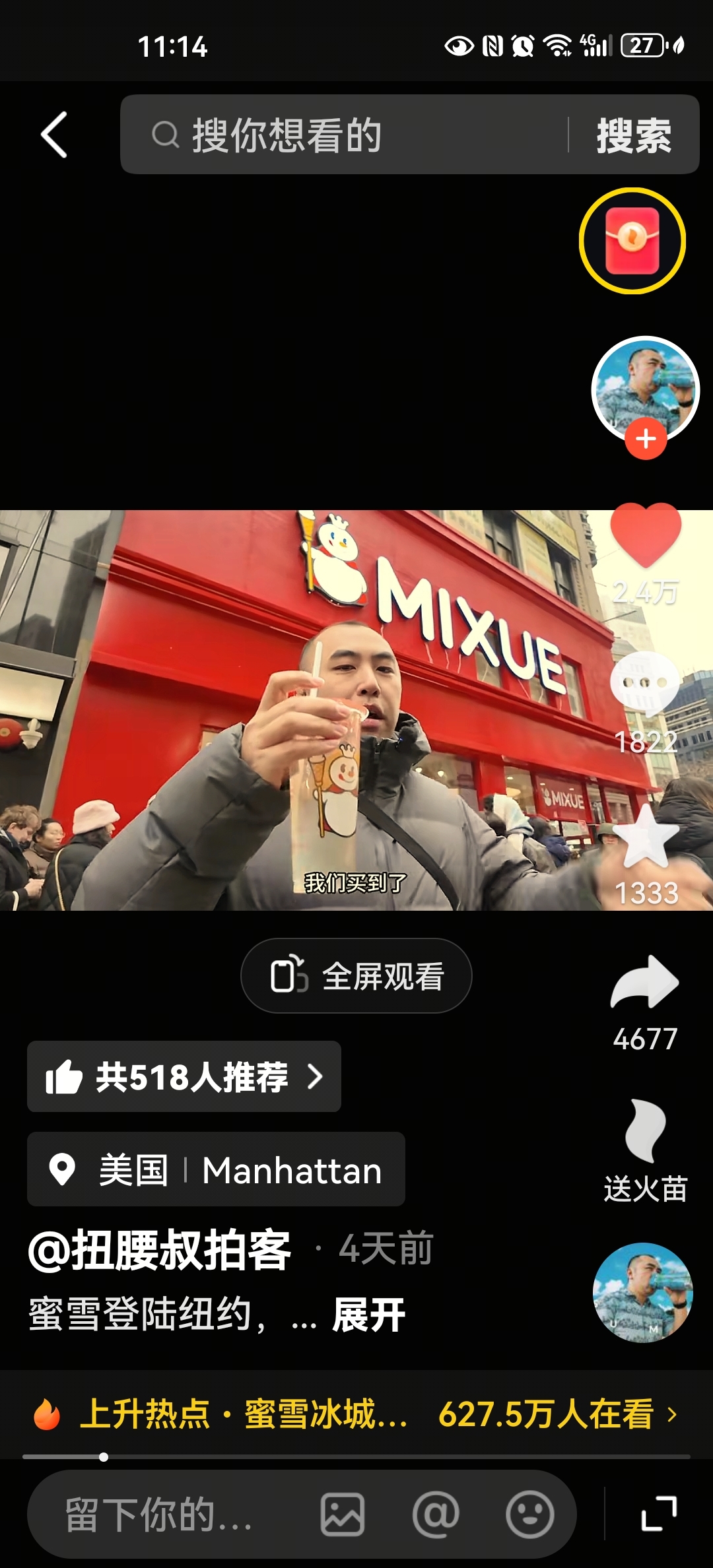 $田野股份(SZ920023)$ 曼哈顿蜜雪冰城卖爆了,柠檬水是当红炸子鸡。