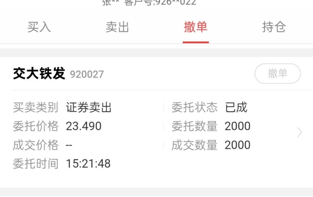 $交大铁发(SZ920027)$ 亏的找不到方向,实在受不了了,昨天下单卖一部分,中午看看居然卖了
