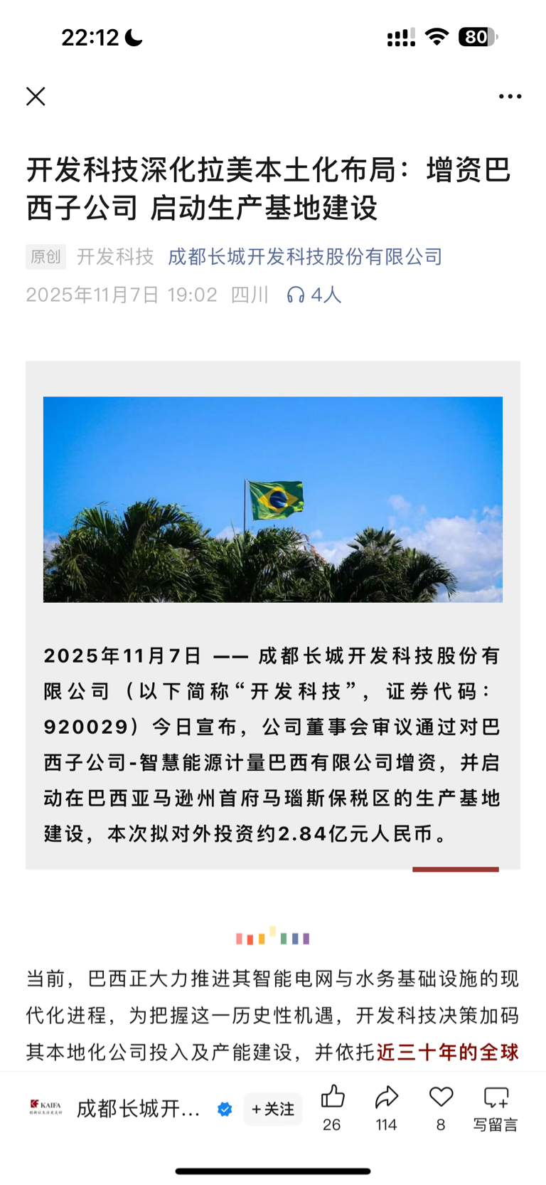 $开发科技(SZ920029)$ 直接把厂建巴西去了