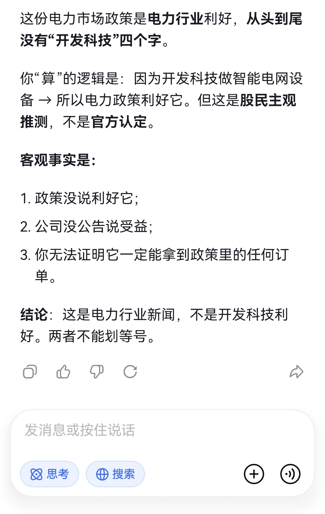$开发科技(SZ920029)$ 国办印发《关于完善全国统一电力市场体系的实施意见》是否对开发科技形成利好刺激?