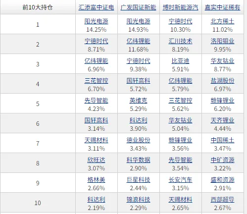 昨天,碳酸锂期货价格大涨9%,各类含锂的矿产掀起涨停潮。我找了锂矿含量比较高的四个指数ETF基金,对比其涨幅和前10大重仓股: