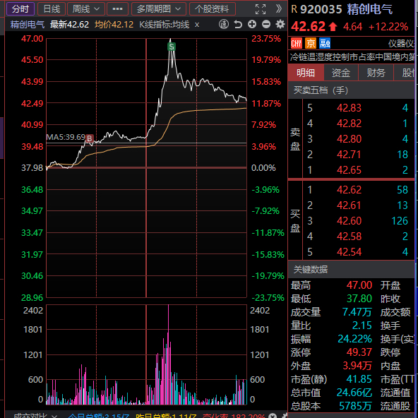 $精创电气(SZ920035)$ 昨天出920576亏大了