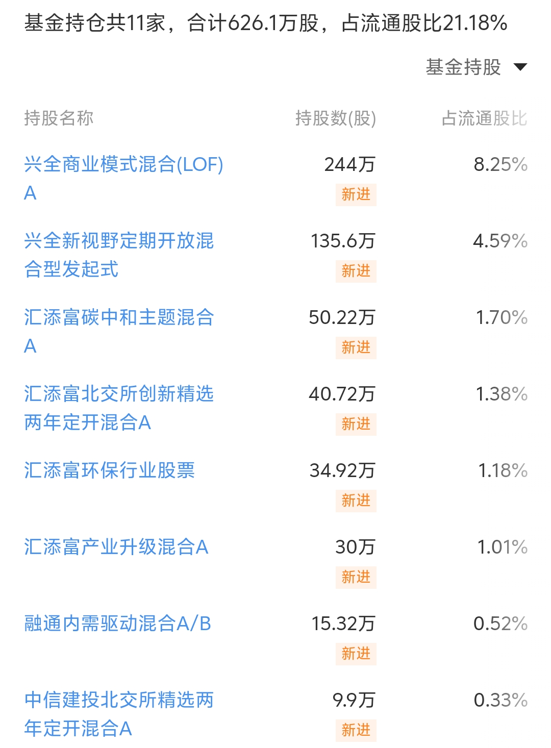 基金持仓低于广信科技