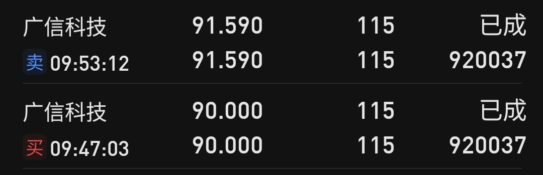$广信科技(SZ920037)$ 小买小卖,一顿饭钱有了!