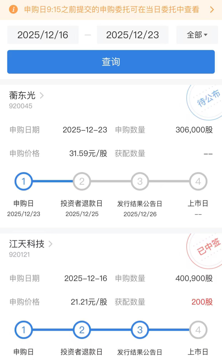 个人申购记录:申购30.6万股(966.6w),保100股,搏1+1,明天下午第
