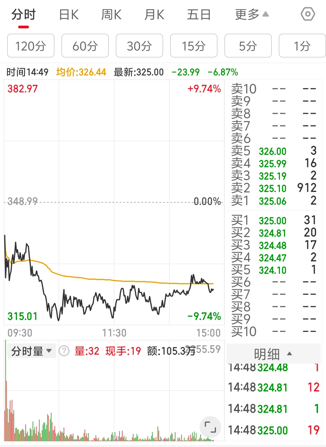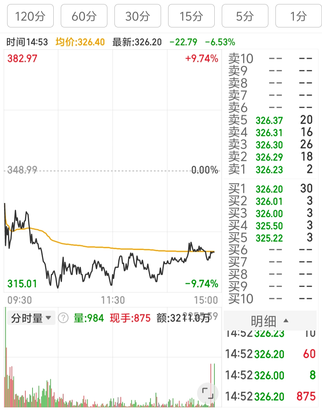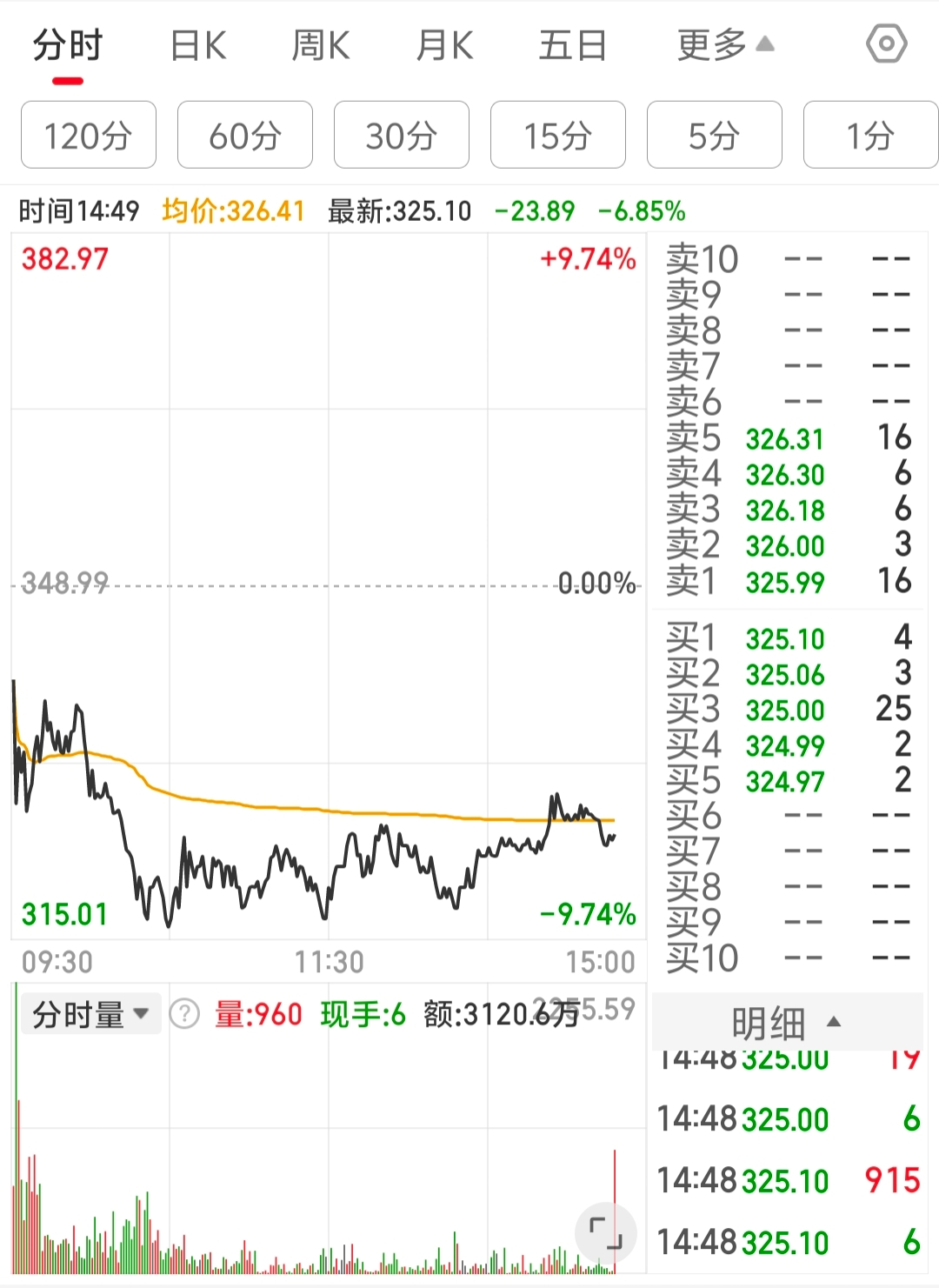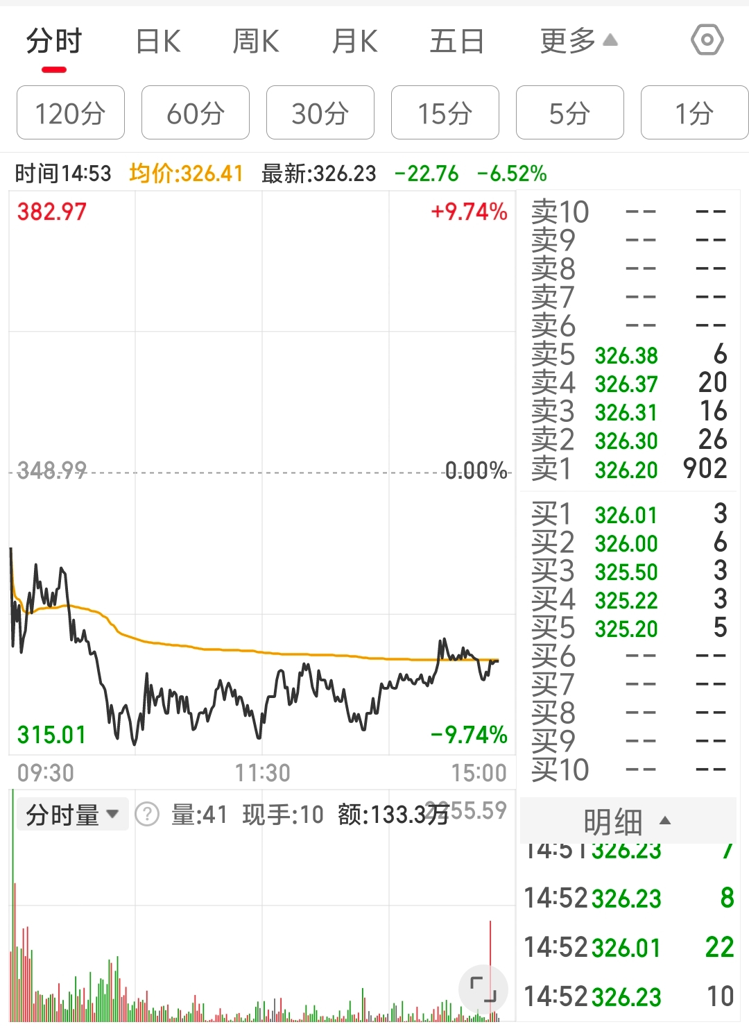 主力在320附近吸筹极其耐心